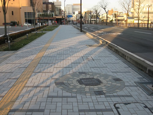 秋田県・広小路歩道融雪工事(歩道タイル)